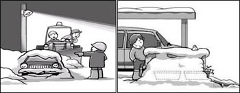 路上駐車は、除雪作業の妨げや、交通事故の原因・近所迷惑にもなりますので、やめて下さい。また、車の乗り入れ用の台や除雪用具なども、作業の障害になりますので路上に放置しないでください。